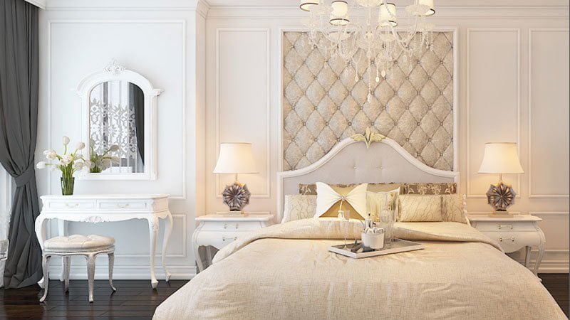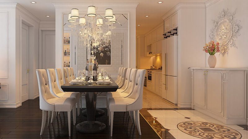Sự thanh thoát của phong cách Tân cổ điển đến từ những điểm nhấn nhẹ nhàng nhưng hiệu quả của vách ngăn CNC hay các chi tiết phào chỉ, phù điêu, tạo nên các mảng khối ngăn chia không gian nội thất. Sự hiện diện của các chất liệu nội thất cao cấp cùng những đường nét cổ điển được tiết chế vừa phải tạo nên sự sang trọng mà tinh tế, hài hòa cho các phòng chức năng.