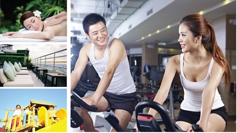 - Khu tập luyện thể thao ngoài trời với sân tập dưỡng sinh và Yoga trên tầng thượng.